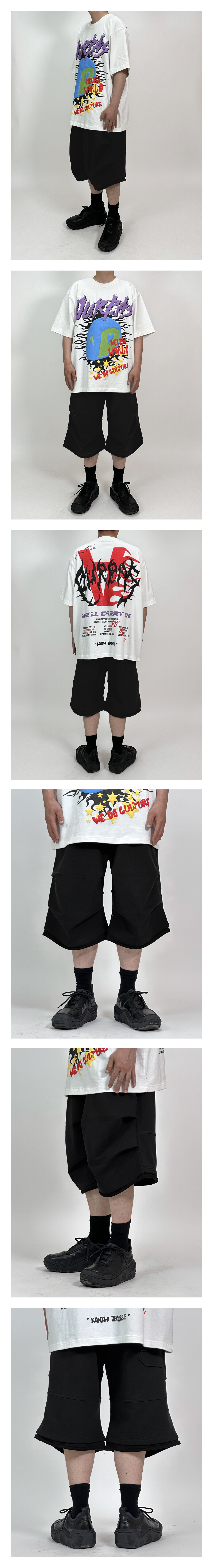 제작한 버뮤다 팬츠입니다. 와이드한 밑단과 더불어