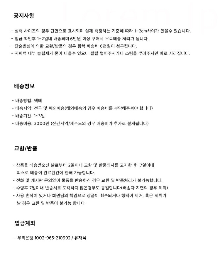 제작 하였으며 앞부분은 외줄 삼봉처리, 밑단과 소매